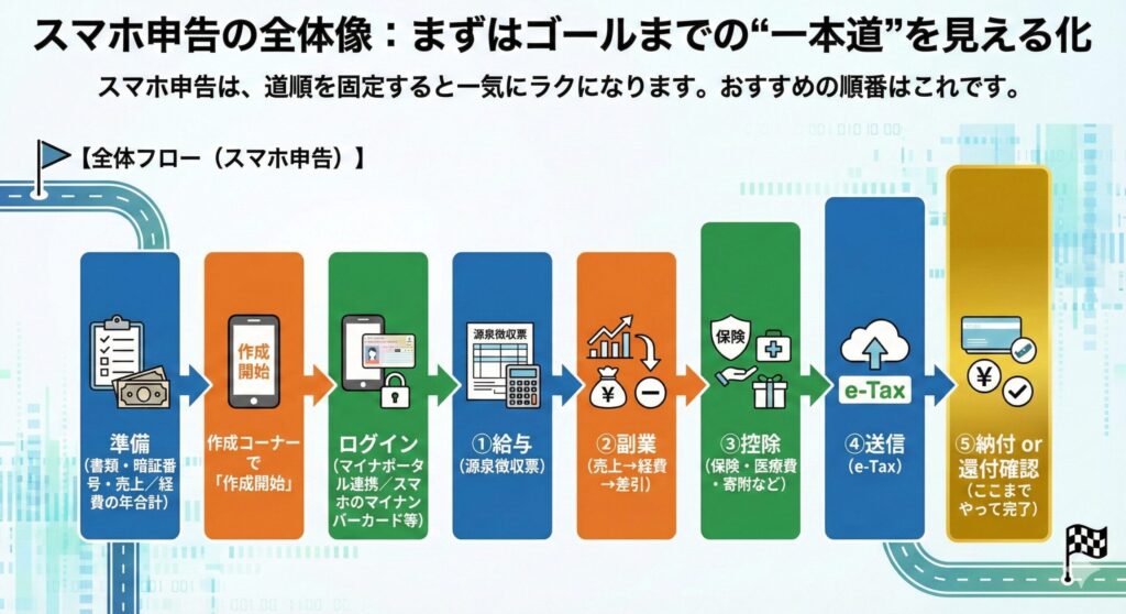 スマホ申告の全体像:まずはゴールまでの“一本道”を見える化