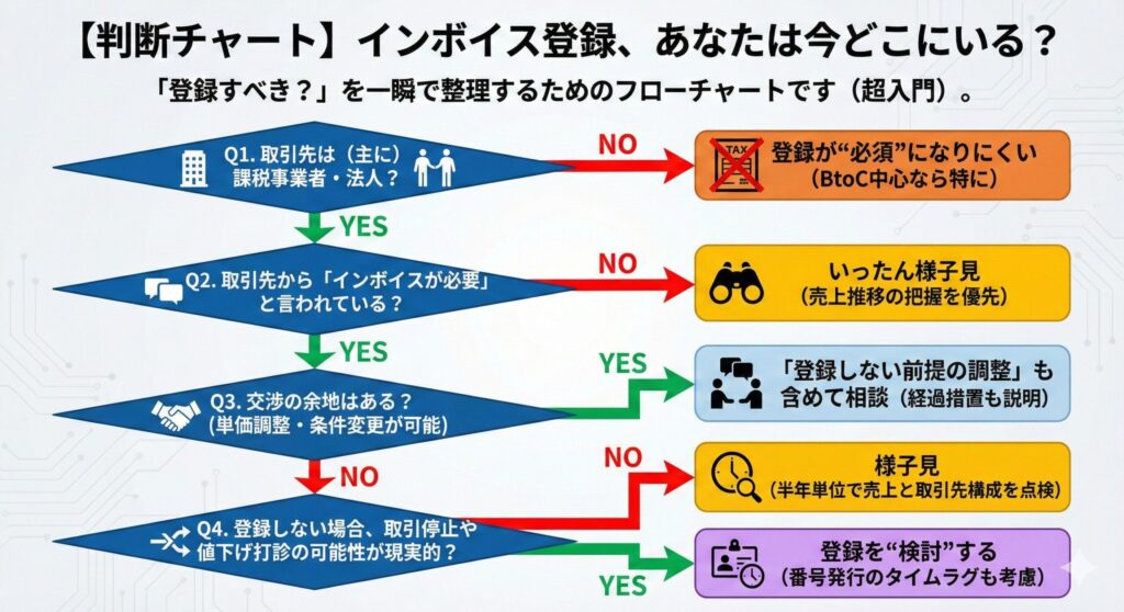 【判断チャート】インボイス登録、あなたは今どこにいる?