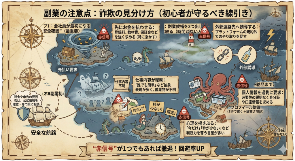 副業の注意点:詐欺の見分け方(初心者が守るべき線引き)
