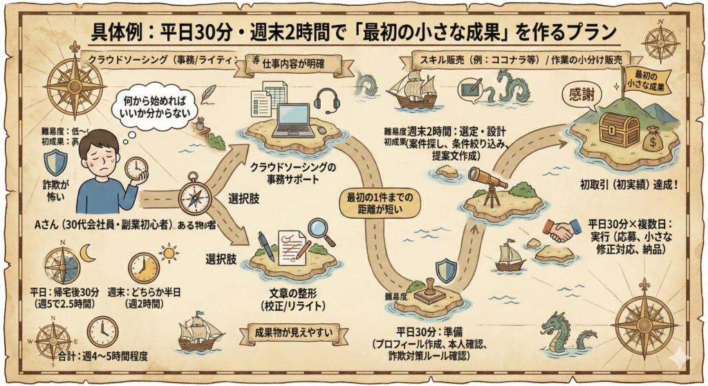 具体例:平日30分・週末2時間で「最初の小さな成果」を作るプラン