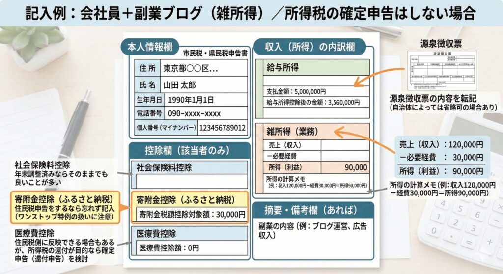 記入例:会社員+副業ブログ(雑所得)/所得税の確定申告はしない
