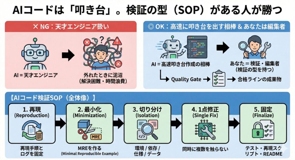 AIコードは「叩き台」。検証の型(SOP)がある人が勝つ