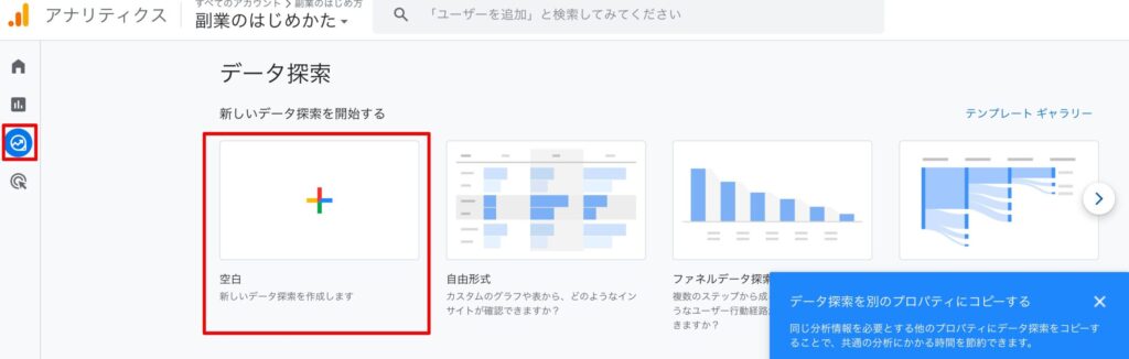 • 左メニューの探索空白(自由形式)を開く