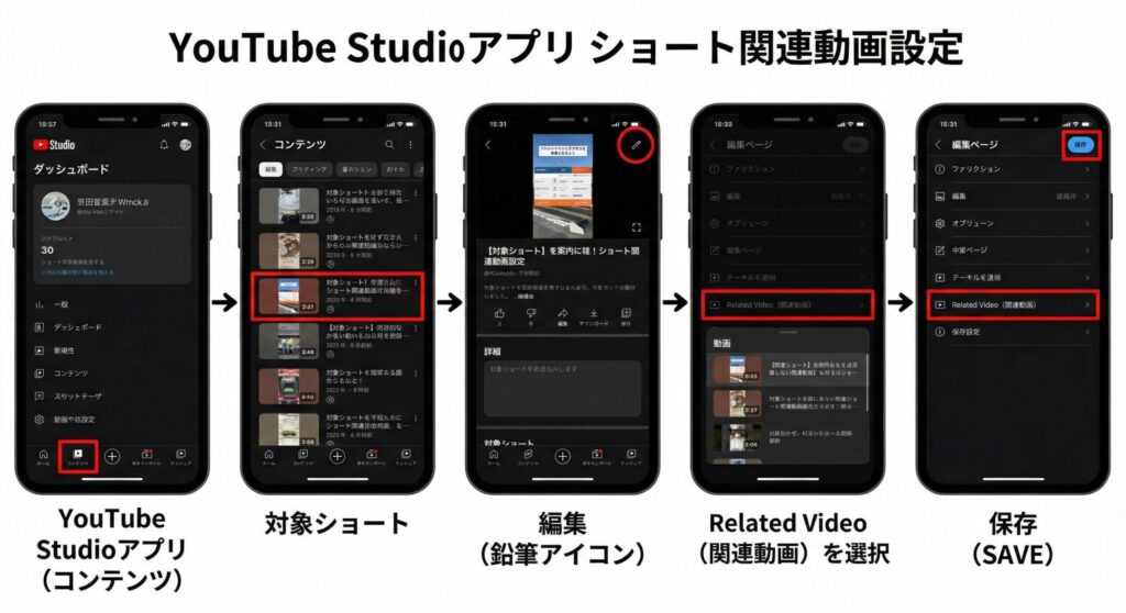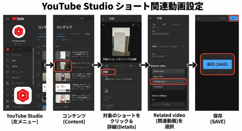- 設定:YouTube Studioでショートに「関連動画」を紐づける
