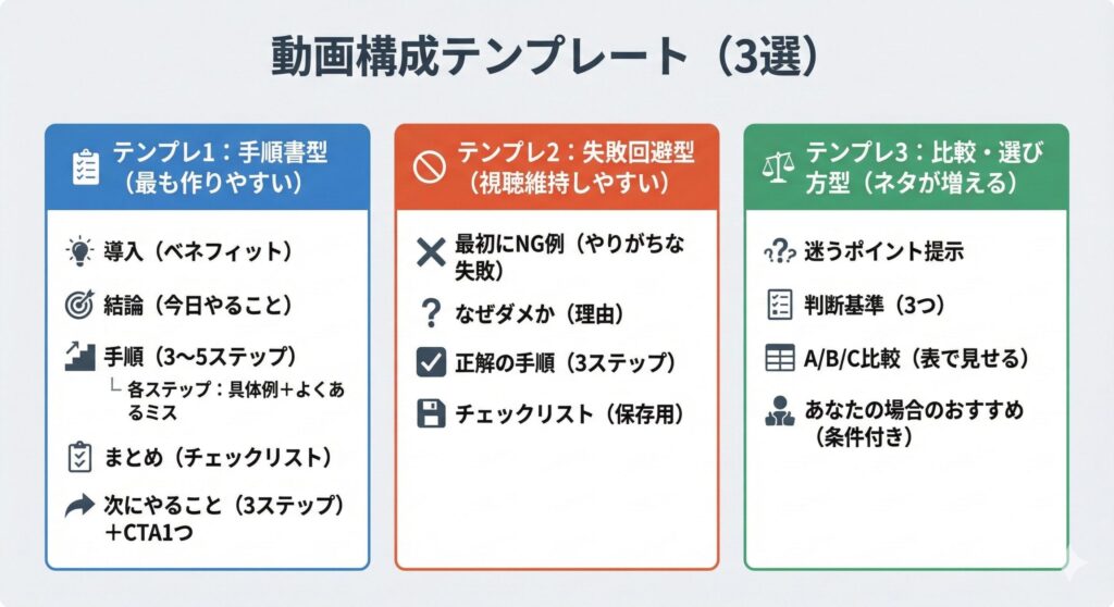 テンプレ2:失敗回避型(視聴維持しやすい)